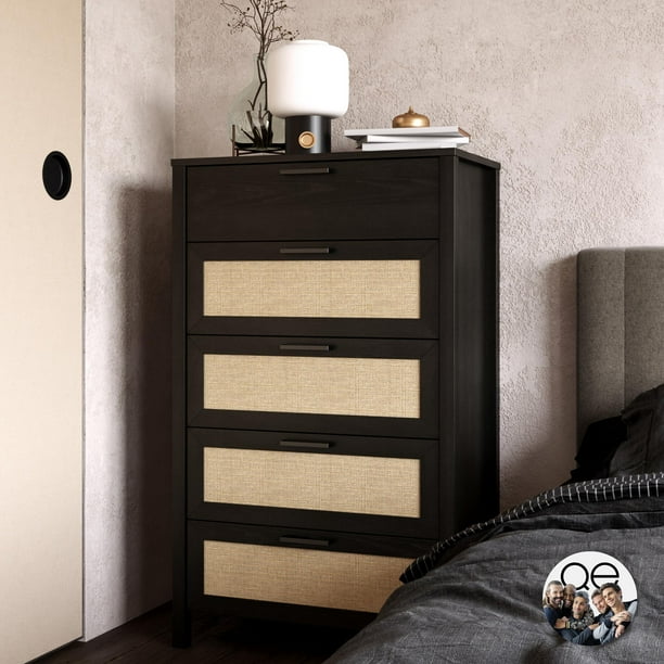Queer Eye Wimberly 5 Drawer Dresser Black Oak With Faux Rattan Walmart Com